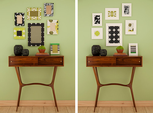 Em primeiro lugar obrigado pelo seu email, Madalena Costa. Efetivamente molduras com tecido ou papel de parede a substituir fotografias pode ficar muito interessante se a conjugação de cores e formas geométricas combinarem na perfeição. Mas há outra opção tão interessante como a primeira, revestir as molduras em tecido, permitindo assim colocar as suas fotos preferidas.