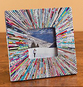 | 1. Enrole canudos de papel e aplique-os na moldura. A moldura deve ter uma base plana para que possa o papel aderir mais facilmente à mesma. |