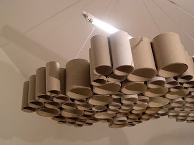 Estive num escritório onde os candeeiros de teto não podiam ser mais Primeira Casa da Rua. Uma iluminação tão simples como a que muitas vezes se utiliza na cozinha das nossas casas e uns tubos de papelão são o suficiente para dar um toque especial à iluminação.