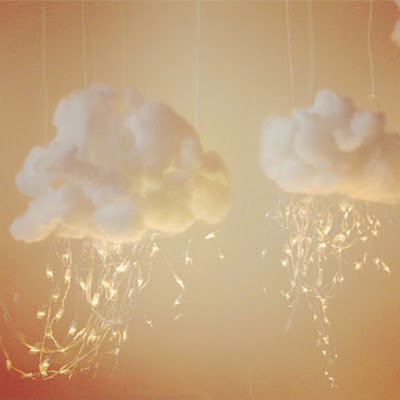 | Algodão e lâmpadas de natal são o mote para uma decoração diferente. |