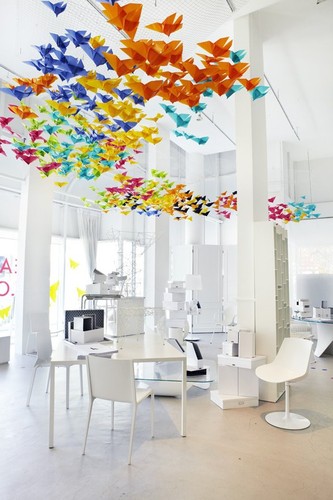 Dobre o papel com o desenho que pretende. Fixe no teto o fio de nylon. Prenda o fio ao camarão com o pássaro colocado na outra extremidade.