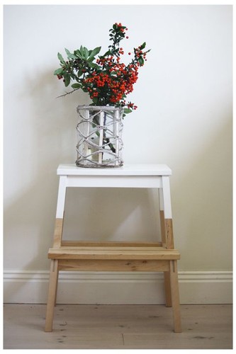 Coloque fita isoladora para delimitar a pintura. Pinte o escadote com a cor que mais se adequa à sua decoração.